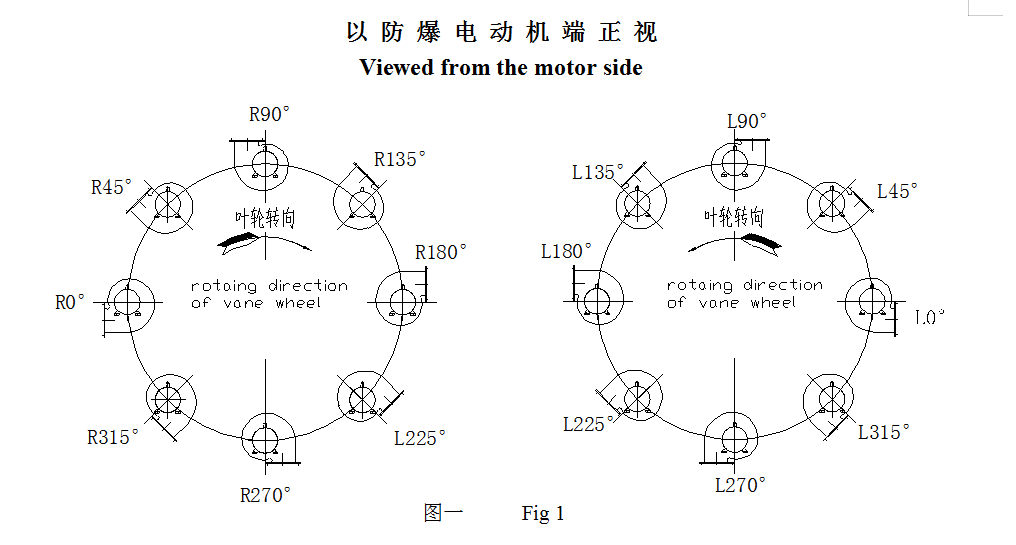 順轉(右轉)— 從防爆電動機端正視,葉輪按順時針方向旋轉,以“R”表示。